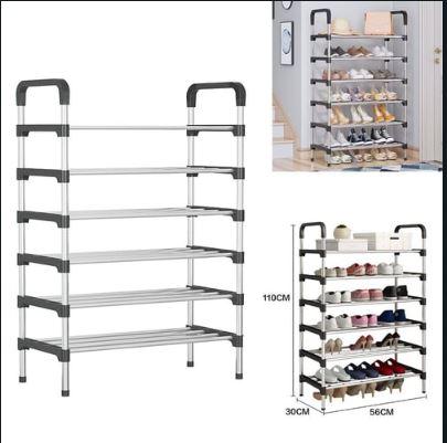 Organize your footwear in style with our 6-Tier Metallic Shoe Rack. This sturdy and space-efficient rack provides a sleek solution for keeping your shoes neatly arranged and easily accessible