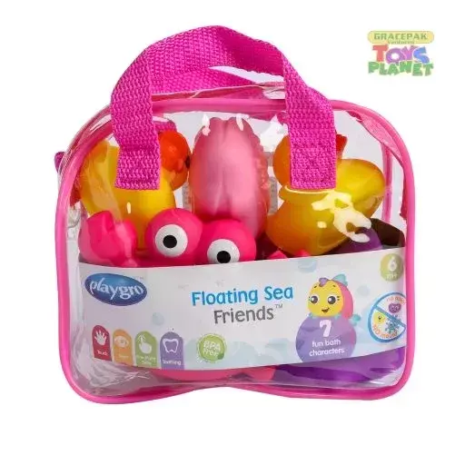 The Playgro Floating Sea Friends are fun for water play and safe to chew. 8 fun colourful animals are soft and sized perfectly for little hands, with bright colours to stimulate baby’s imagination and senses, they are great in or out of the water. Completely sealed to prevent mold developing inside, making them safe for baby to chew and easy to clean. Packed in a handy gift bag which can be used to neatly store the toys after play or bath time. Fully sealed, no holes, no mold Includes 8 sea characters for extended bath and water play fun Handy storage case Bright colours stimulate visual senses and imagination Perfectly sized for little hands