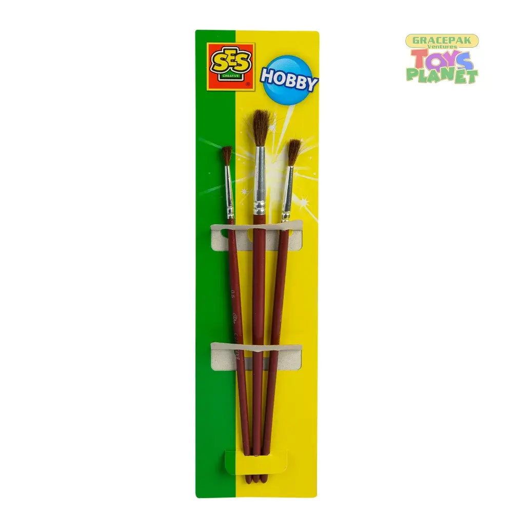 SES Brush Set-3 Pieces is a set of high-quality paint brushes for children. In three different sizes, this is a fantastic first set for children and can be used for a variety of painting activities. Light-weight, durable, with comfortable handles, these brushes are perfect for children. A set of three paint brushes for children High quality and designed for small hands With durable and attractive red handles In three different sizes, this comprehensive kit is great for a variety of painting activities An easy way of encouraging creativity and hand eye co-ordination skills